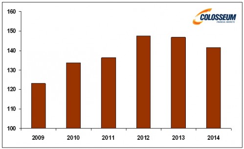 Mezinárodní organizace pro kávu (IOC) uvedla, že v následujících pěti letech by mohla vzrůst celosvětová spotřeba kávy o 25 procent. Podle výkonného ředitele organizace Roberia Silvy roste spotřeba kávy v Indii, Číně a Latinské Americe. Do roku 2020 by mohla její celosvětová konzumace dosáhnout 175,8 milionu pytlů ze současných 141,6 milionu pytlů (1 pytel = 60 kg). Odhad rostoucí poptávky přichází v době nízkých globálních dodávek, které jsou způsobené loňským rekordním suchem v Brazílii. Země je jejím největším pěstitelem na světě, a díky tomu je očekáván pokles celosvětové roční produkce na 141 milionů pytlů.
