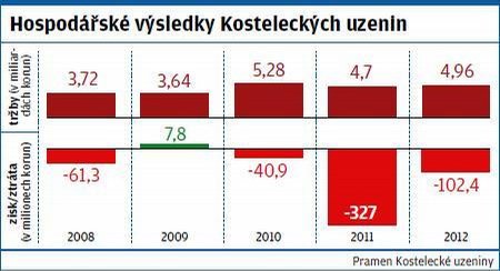 Za celý rok jsou ale Kostelecké uzeniny stále ve ztrátě, neboť do loňského výsledku musely zohlednit důsledky předchozích operací, které prováděly od roku 2007.