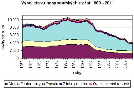 Tab. 2 – Stavy hospodářských zvířat (tisíce kusů, ČSÚ)