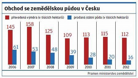 „Rozsah převáděné půdy se od roku 2009 ustálil okolo průměrného podílu 2,5 procenta zemědělského půdního fondu,“ vyčísluje ministerská zpráva. Na nižší převody má velký vliv útlum v prodeji státní půdy.